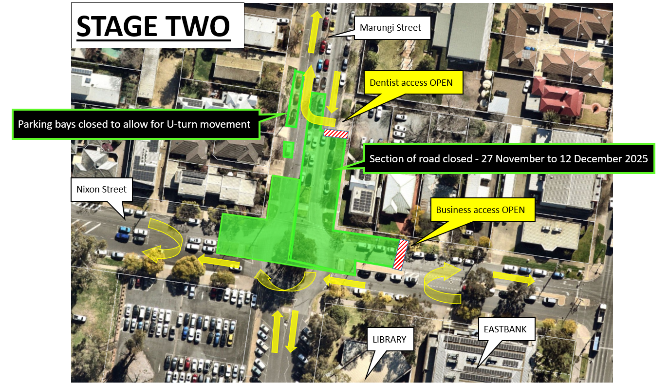 - STAGE 1: 30 October to 27 November 2025 Eastbound closure departing Nixon/Marungi Street roundabout and southbound closure of Marungi Street at Nixon/Marungi Street roundabout.