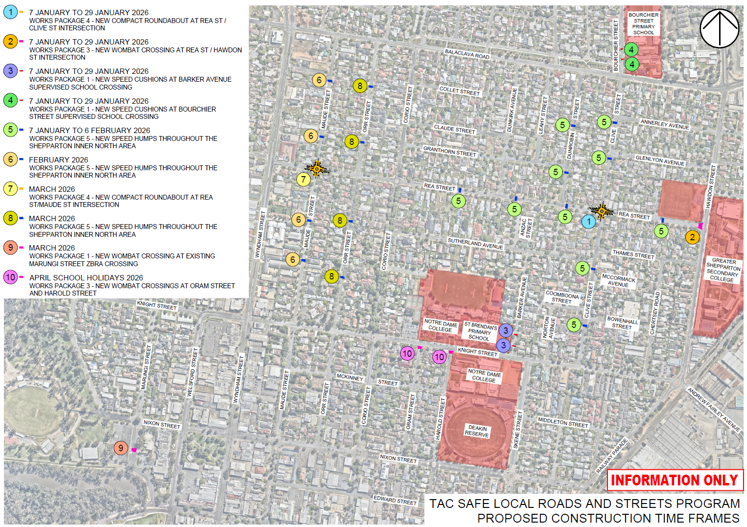 - 7 January to 6 February 2026 Works Package 5: New speed humps throughout the Shepparton Inner North area.